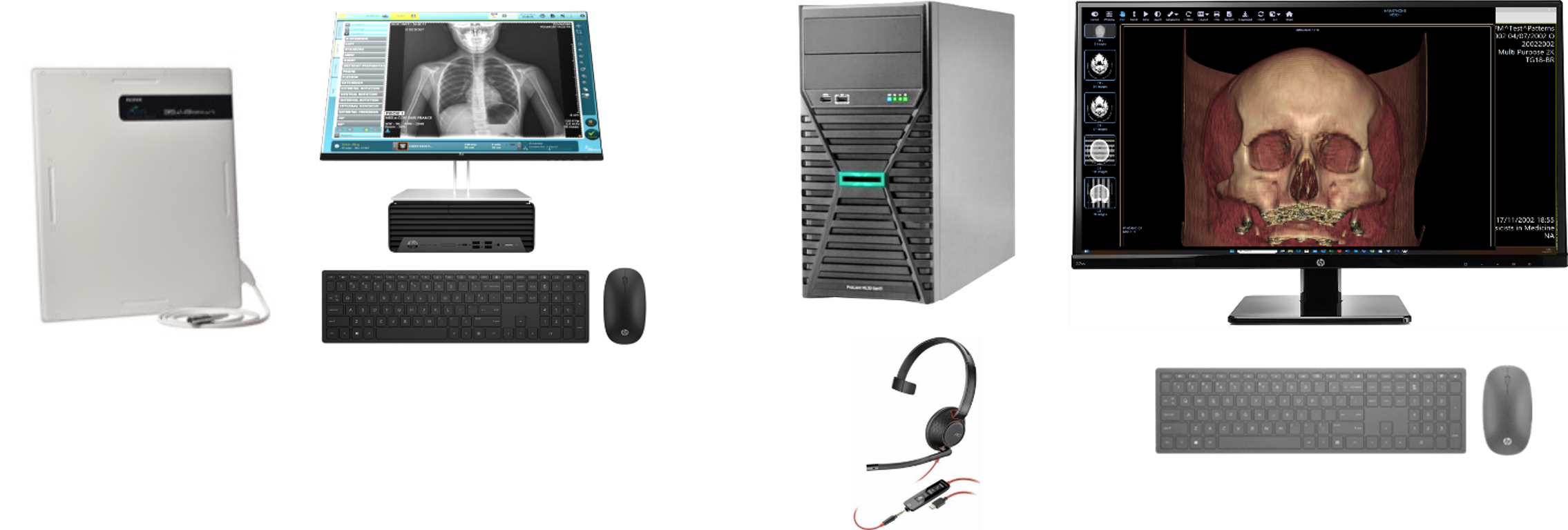 ● Based on HP Z2 G9 Workstation ● HP DVD Writer external DVD+ -R/RW ● Processor Intel I7-14700 ● Storage 32GB SDRAM & 512GB SSD ● Graphic Controller Intel UHD Graphics 770 ● Operating System Windows 11 Pro – 64 bit ● Image Monitors 2x HP Serie 7 Pro 4K UHD LED LCD 27" 8MP ● Administration monitor HP Seie 7 Pro 24" WUXGA USB-C 2MP - 2K HD ● Radiant 3D/MPR DICOM viewer & CRCB-PACS standard DICOM viewer ● Microsoft Office 2024 with permanent license ● Headset POLY Blackwire 5210 for report function